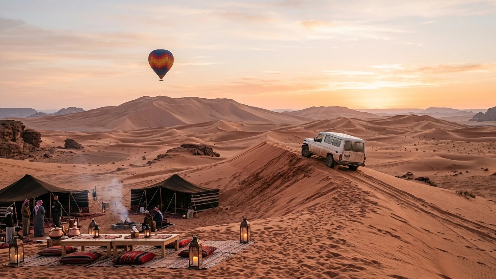 The Balloon + Safari Full Day is a bundled booking that saves you the admin and the transfer cost of booking two separate tours. Everything runs from the same Bedouin camp with one pickup and one drop-off. Prices include all equipment, insurance, refreshments, and entertainment where listed.