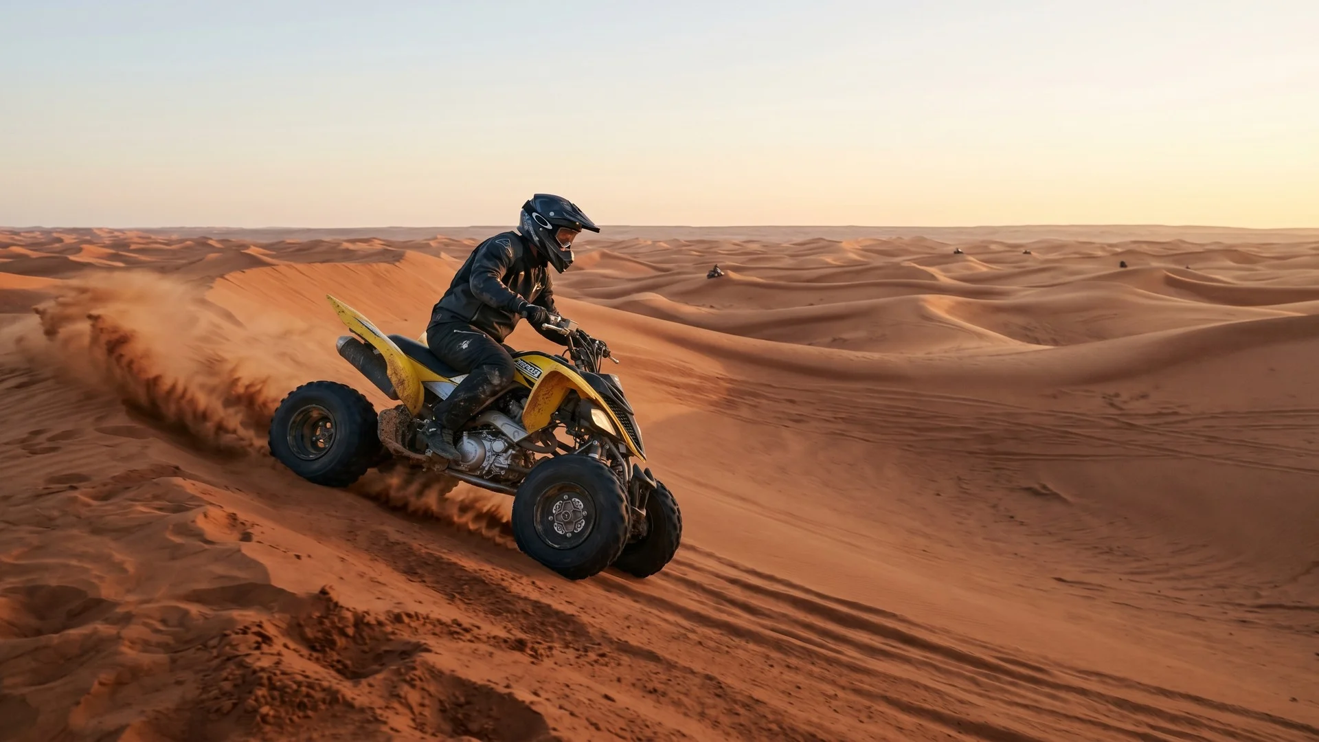 For most riders — yes. A 1-hour quad biking session is our most-booked package because it is the Goldilocks window: 30 minutes is too short to get past the nervous phase, and 2 hours can start to tire shoulders and wrists for first-timers. In 60 minutes you get a full briefing, two photo stops, one deep-dune section and enough ride time to actually trust the quad. All in for AED 250 per rider, door-to-door is around three hours with pickup included.