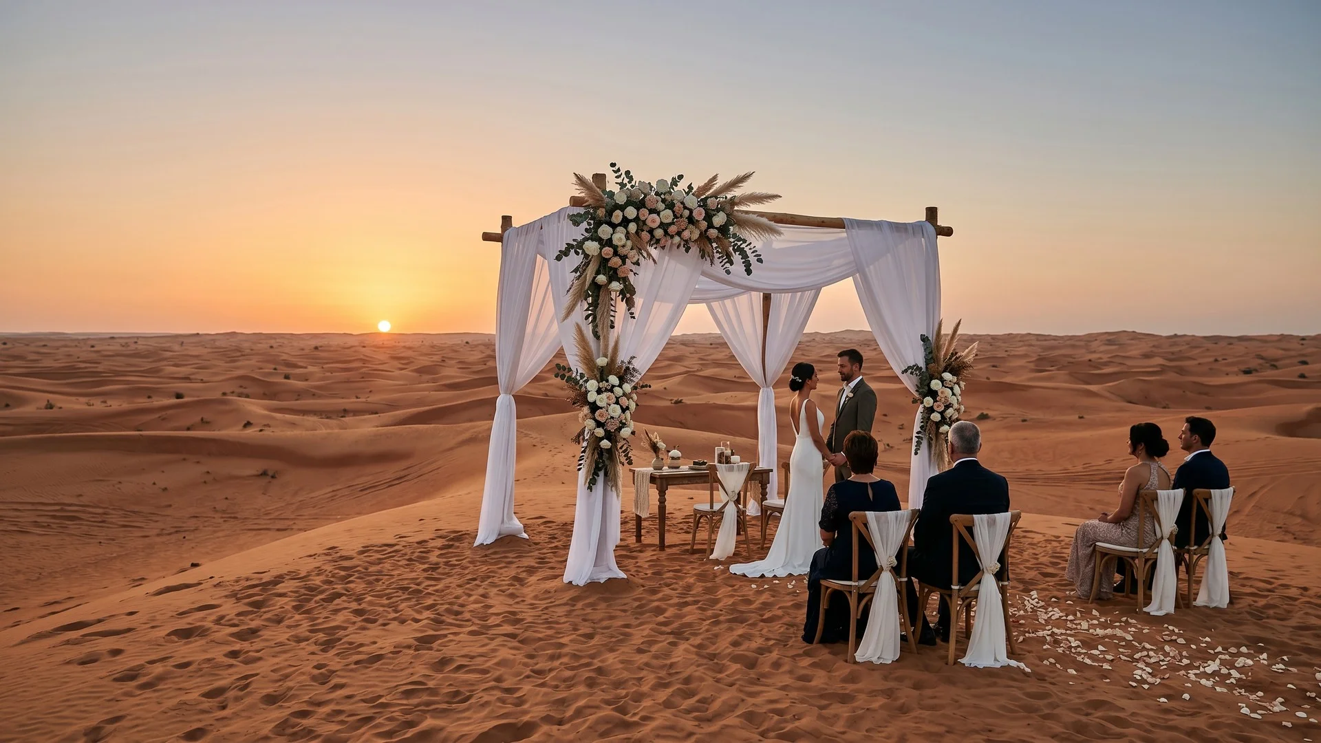 Micro-weddings, vow renewals, proposals, and photo shoots in the Lahbab red dunes.